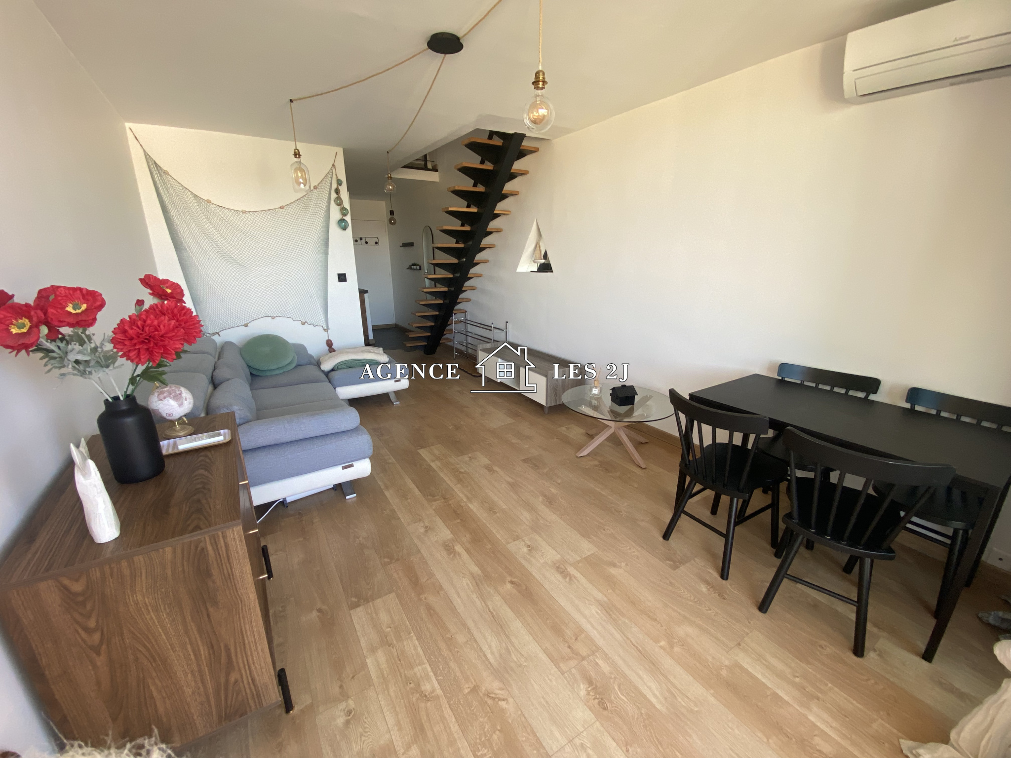 A louer, beau T3 meublé en duplex dans une résidence fermée, ce bien est en excellent état et décoré avec goût. Il se compose d'une entrée, d'une cuisine ouverte sur séjour donnant accès sur un balcon, et à l'étage se trouve 2 chambres dont une avec un balcon, une salle de bains, et un wc. Une cave vient compléter ce bien.